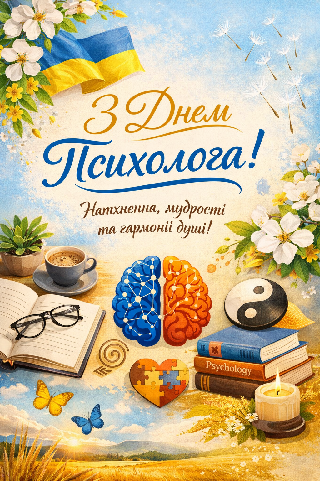 Дякуємо кожному психологу України за витримку, людяність та невтомну боротьбу за ментальне здоров’я нації. Бажаємо вам невичерпного внутрішнього ресурсу, професійного зростання та мирного неба. Нехай ваше світло повертається до вас сторицею!
