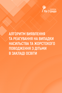 ГО «Ла Страда-Україна» розробила детальний алгоритм виявлення та реагування на випадки насильства та жорстокого поводження з дітьми в закладі освіти, який базується на Постанові Кабінету Міністрів України від 04.06.2025р. №658 «Про затвердження Типової програми унеможливлення насильства та жорстокого поводження з дітьми» та Постанові Кабінету Міністрів України №1513 від 19.11.2025р. «Про затвердження Порядку реагування на випадки насильства та жорстокого поводження з дітьми».